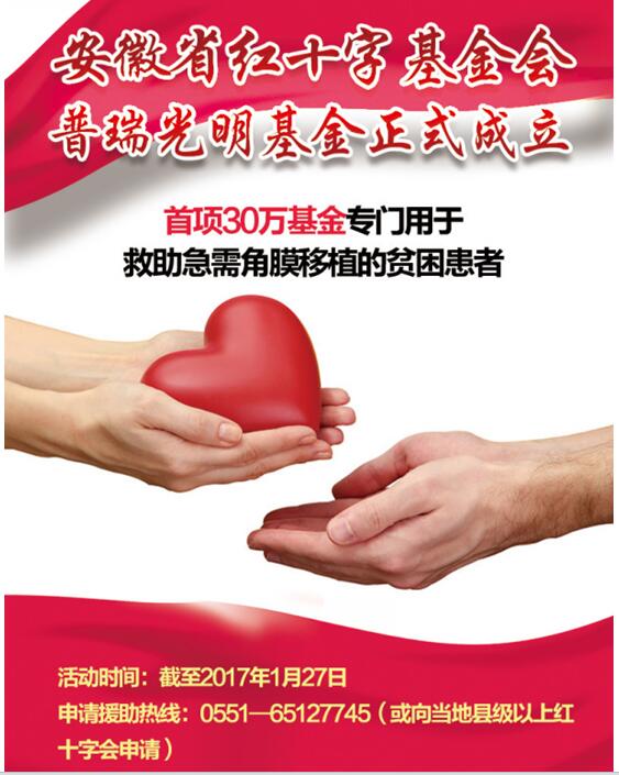 普瑞光明基金首项救助活动将持续至2017年1月27日,如果您是和陈孟芝一样需要我们援助的贫困角膜病患者,请拨打电话0551—65127745申请或向当地县级以上红十字会申请。